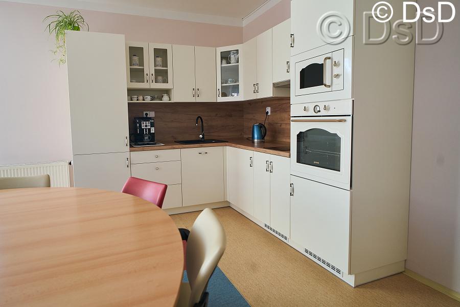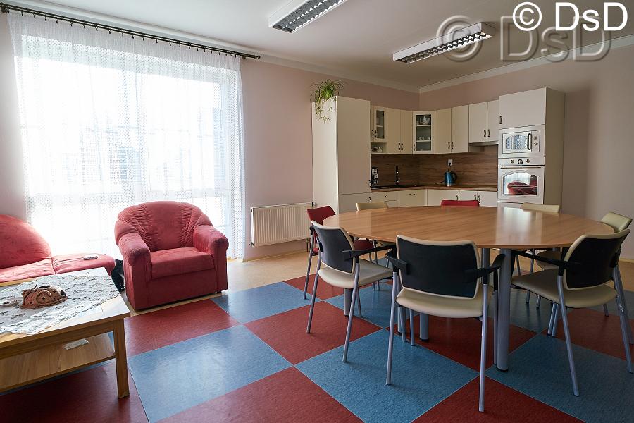 Místnost slouží pro trávení volného času personálu, klientů a rodinných příslušníků.